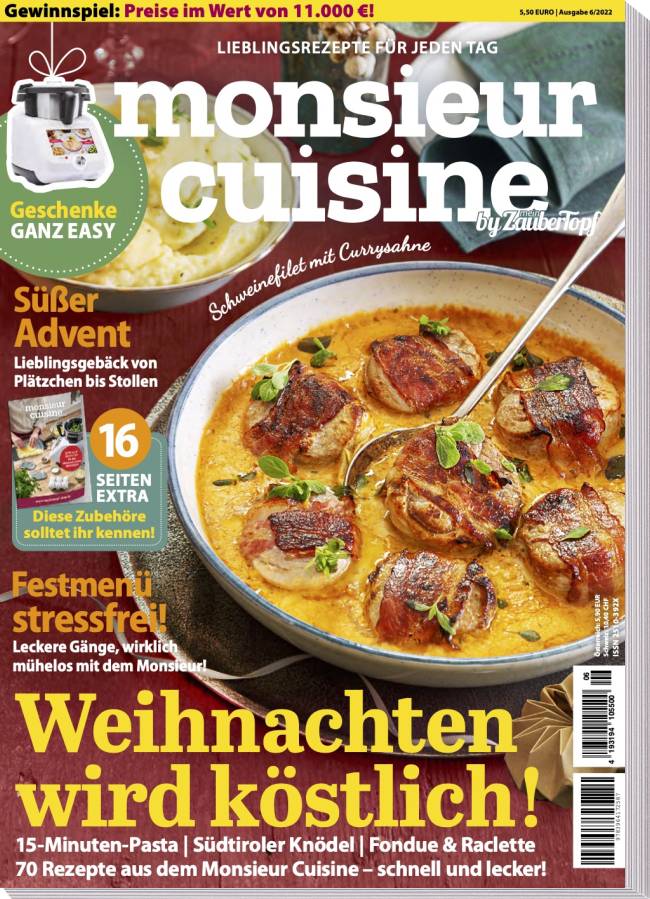 Diese Ausgabe haben wir ganz und gar der Gemütlichkeit gewidmet. Nach einem stressigen Jahr können wir alle auf eine hektische Vorweihnachtszeit verzichten. Daher findest du viele Ideen für schnell gekochtes Comfort Food aus dem Monsieur Cuisine wie Tortellini Carbonara, Kartoffelsuppe mit Kochwurst oder einfach selbst gemachte Käseknödel mit mediterranem Twist.